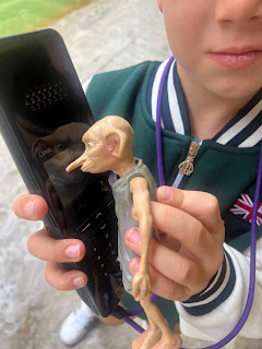 It was a little chilly when the sun wasn't out so I bought Levi this London jacket in which he wore most of the remainder of the trip. Later to be paired with his bowler hat. Dobby was still with us touring!